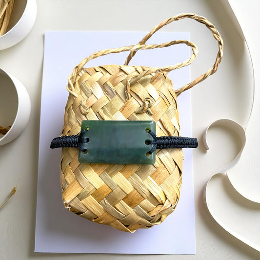 NZ Greenstone (Pounamu) Braided Bracelet - Rectangle