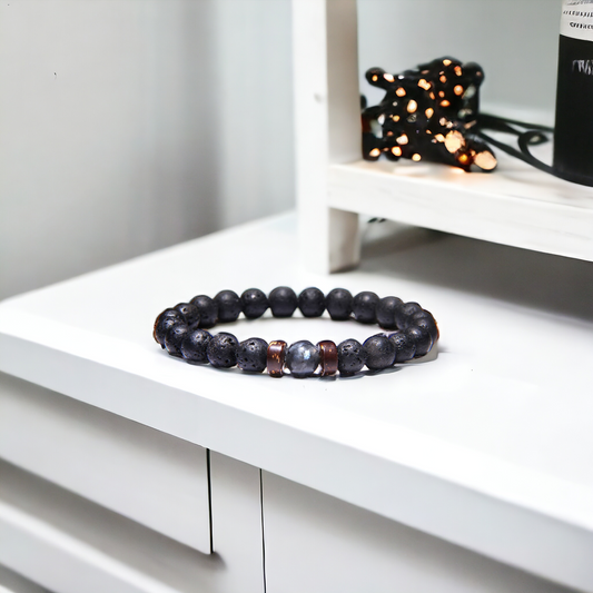 Nudi Point Bracelet Wooden Beads & Lava Stone