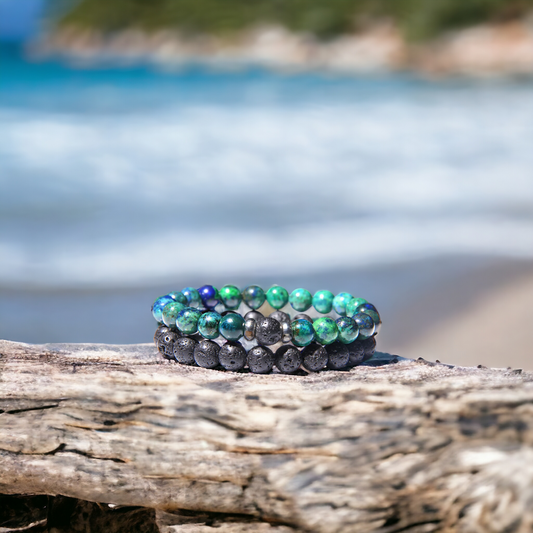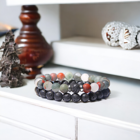 Sold out - More on the way!Nudi Point Men's Lava Stone & Imperial Jasper Bracelet Set