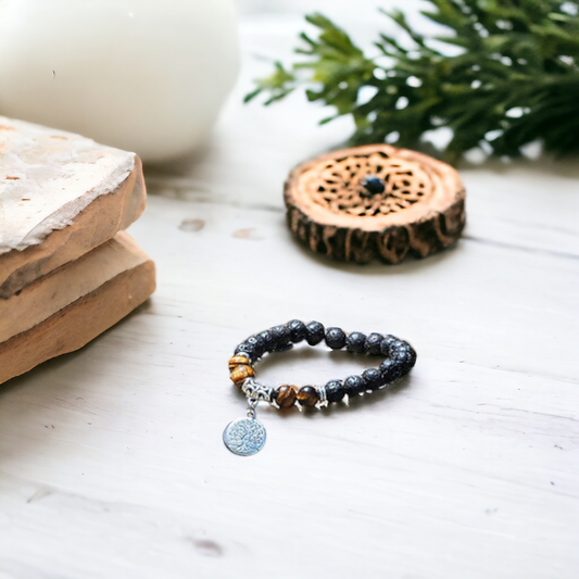 Sold out - More on the way!Nudi Point Tiger's Eye & Tree of Life Lava Stone Bracelet
