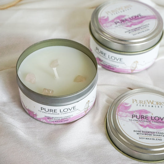 Pure Works Pure Love Rose with Rose Quartz Crystal Energy Candle 200gm