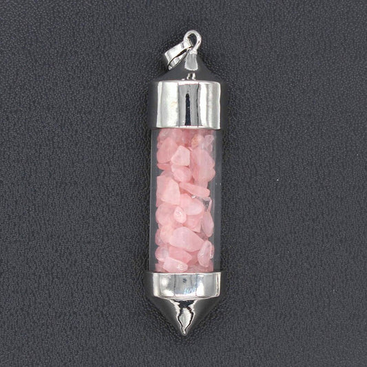 Nudi Point Crystal Bottle Pendant - Rose Quartz
