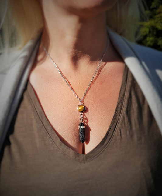Sold out - More on the way!Nudi Point Tiger's Eye Lava Stone Pendant