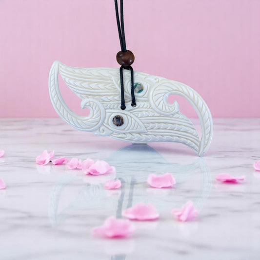NZ Bone & Paua Shell Pekapeka (Bat) Pendant