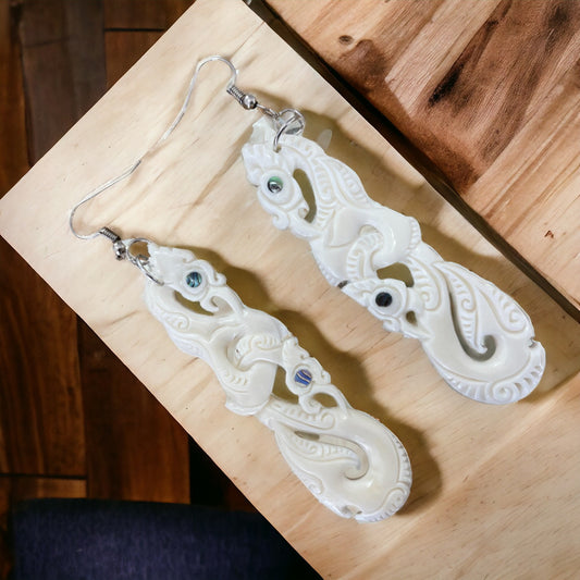 NZ Bone Double Manaia & Hei Matau (Fish Hook) EarringsRegular price $43.99 NZDRegular priceUnit price / per$54.99 NZDSale price $43.99 NZDSale
