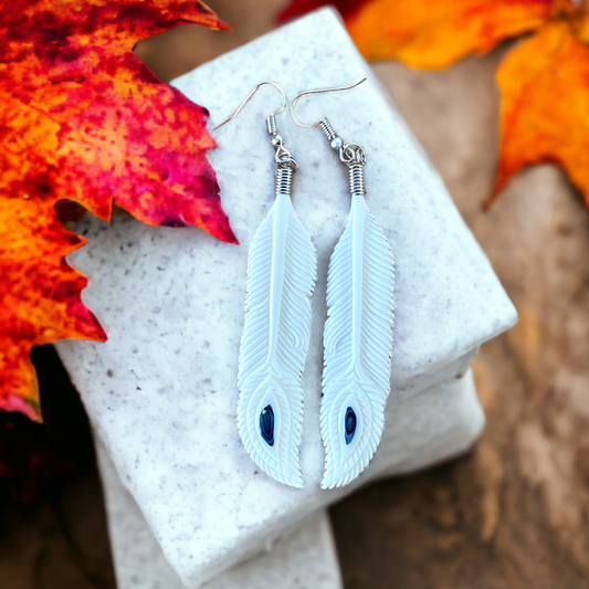 NZ Bone Huia Feather Earrings with Paua ShellRegular price $31.99 NZDRegular priceUnit price / per$39.99 NZDSale price $31.99 NZDSale